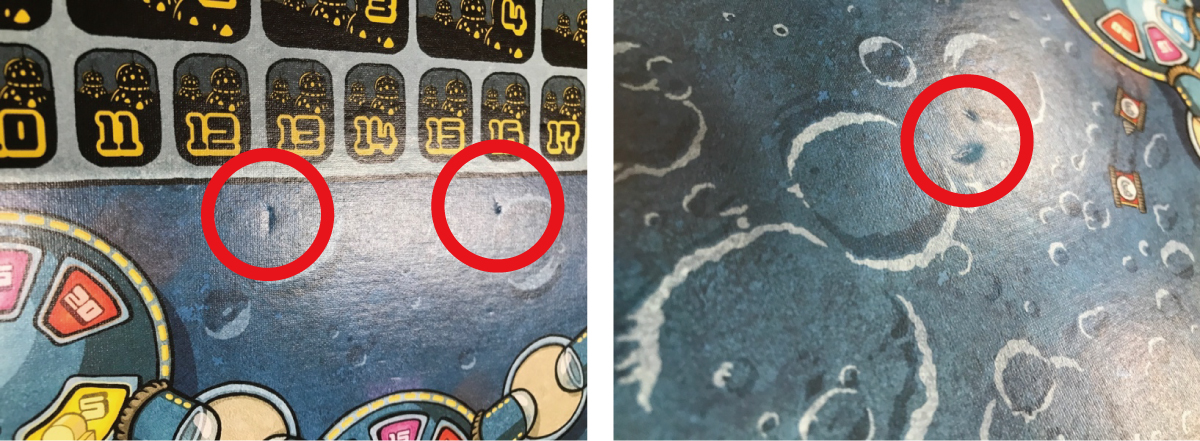 オリジナル版メーカーおよび製造工場に確認を行ったところ、本商品のオリジナル版(Power Grid: Outpost)を含む、ほぼ全数の製品において同様または類似の状態が生じているとの回答を得ております。とくに顕著な例として、下記画像をご確認ください。