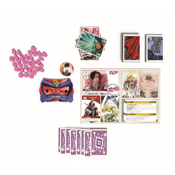 プレイヤーはスーパーヒーローの力に目覚め、徐々に成長していきます。各ラウンドごとに公開する「ストーリー」によって様々な特殊能力を獲得していき、5ラウンド目にはその正体を明かし、強力な能力とともに最終決戦へと向かいます。それぞれのプレイヤーマットには固有のキャラクターと能力が描かれており、そこに4枚の「ストーリー」と1枚の「スーパーヒーロー」が公開されることで、スーパーヒーローとなるに至ったあなただけの物語が出来上がるでしょう!