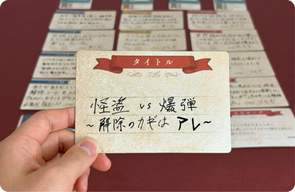 本作は協力ゲームのため、大喜利系や即興で物語を作る系のゲームが苦手な人でも遊びやすいのが魅力です。話に矛盾が生じたり、展開に詰まったと感じたりしたときでも、みんなで考えれば思いもよらぬ突破口が開けるかも?