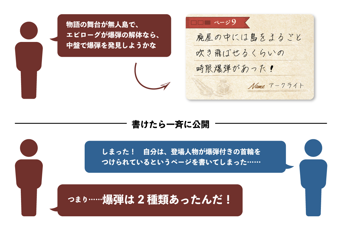 ただしエピローグだけは最初から決まっています。その結末を手がかりに想像を膨らませ、仲間と力を合わせて物語を紡いでいきましょう。